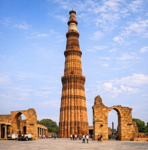 Built in 1199 by Qutb-ud-din Aibak, with later additions by Iltutmish and restorations by Tughlaq and Lodi rulers.
